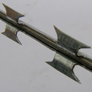 Армированная колючая лента АКЛ — это оцинкованная лента специального профиля толщиной 0,5 ±0,05 мм, имеющая в профиль обоюдоострые, симметрично расположенные шипы с режущими кромками, которая «закручивается» вокруг оцинкованной проволоки диаметром 2,5 мм ±0.1 мм. Шаг зубца 35 мм.